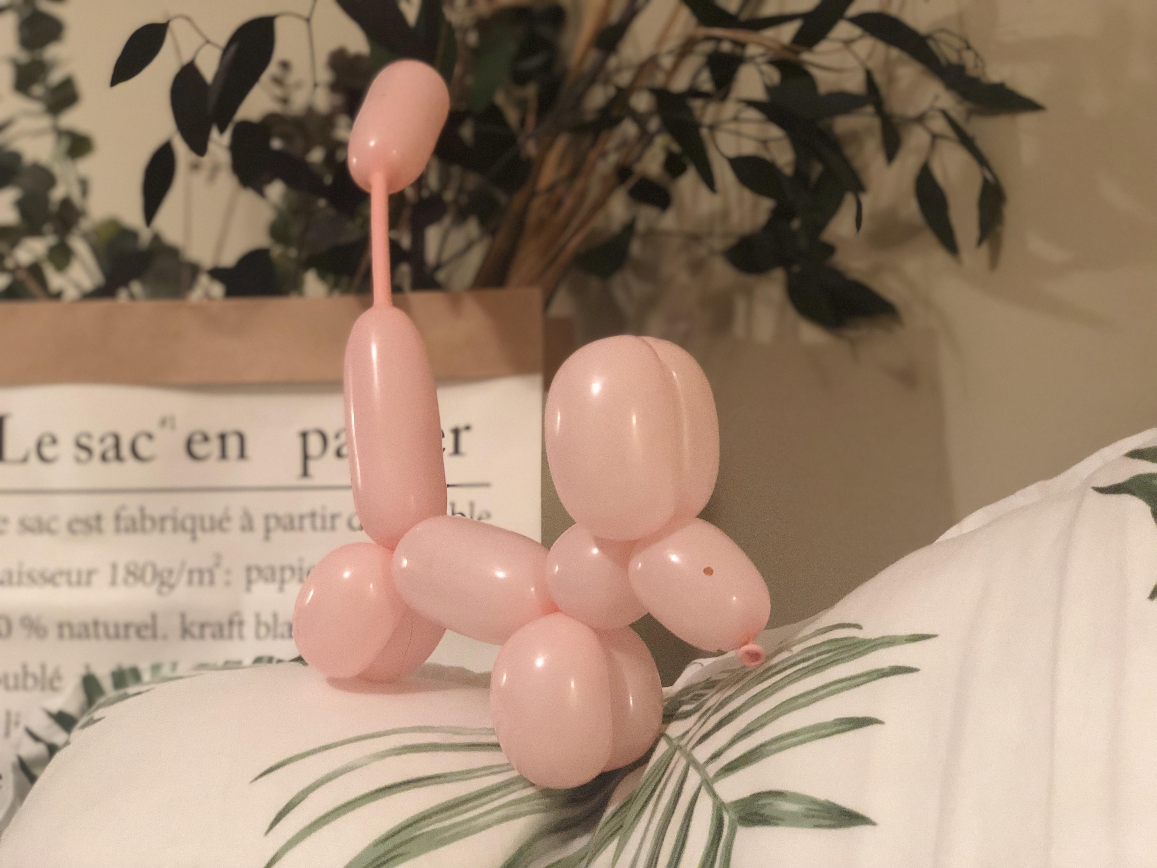 ? 跑题一下,想要哄女朋友的男生可以尝试做一下上图的气球小狗。几乎没有难度很好上手,B站上有很多教程。收到的时候完完全全戳中了我的少女心,真的特别喜欢嘻嘻嘻。找了当时缠着小何教我做的时候看的视频:最基础气球扎小狗视频。