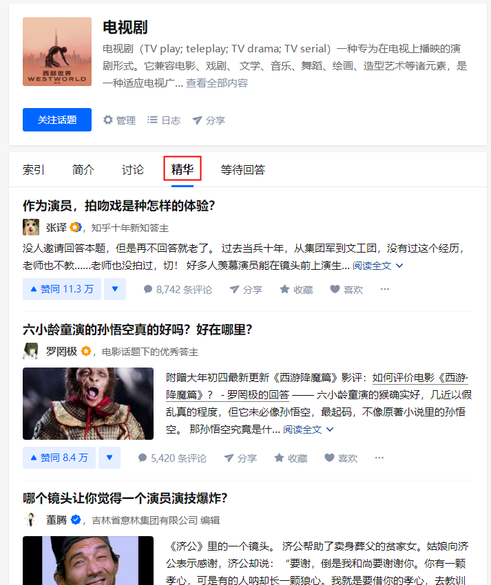 也可以关注一个话题,筛选出【精华】板块的高赞文章。