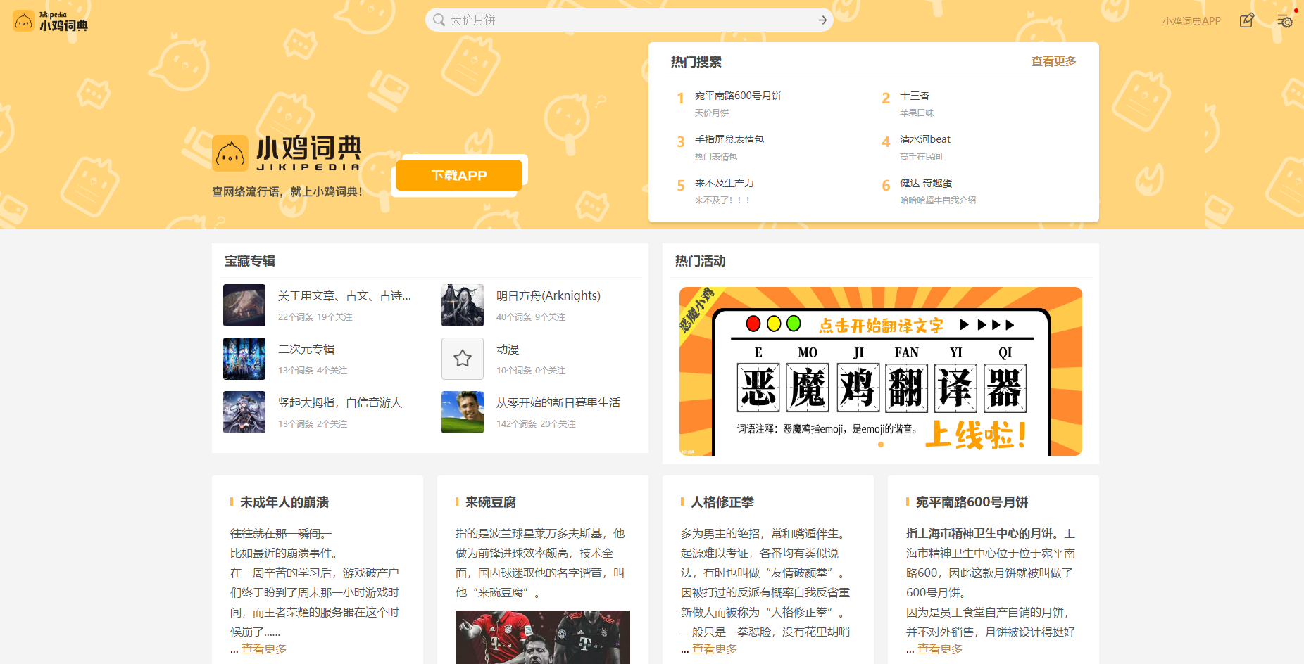 首页的热榜分享了近期比较热门的流行语,往往也和最近的时事新闻挂钩。