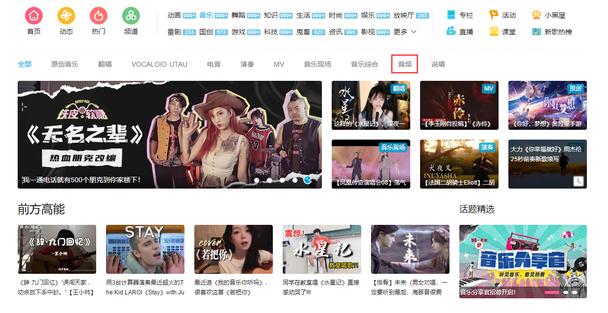 音乐板块除了音乐类视频,还有纯收听的音频类内容。