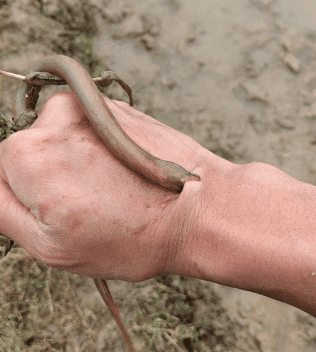 一位网友的无奈吐槽,去河里面捉鱼,捉了很多鱼,看到一条鳝鱼不是太大,心想着放了它吧,谁知道刚捉到就被咬了一口,这可把网友吓坏了,直接把鳝鱼给踩到泥里了,但是他心里有很多疑问,这被鳝鱼咬了,应该没事吧?
